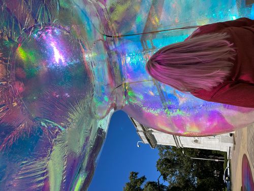 Evanescent is an immersive, outdoor light and sound experience inspired by the beauty, fragility, and transience of the natural world. Resembling oversized clusters of bubbles, the installation invites visitors to walk around, through, and under the iridescent spheres that will be installed on the museum’s plaza on September 30 through October 21st. The work is covered in dichroic film—a material that refracts the sunlight into beams of different wavelengths, creating a rainbow of different colors that emulates the unique and captivating surface of a bubble. At night, the bubbles are illuminated from within, creating a dynamic show of colored light choreographed to an ethereal soundscape.